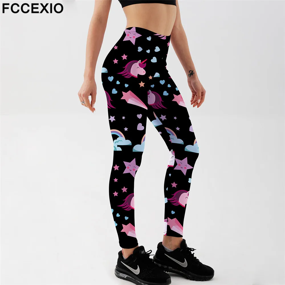 Отзывы о FCCEXIO милые Мультяшные единороги принт женские брюки с высокой талией модные