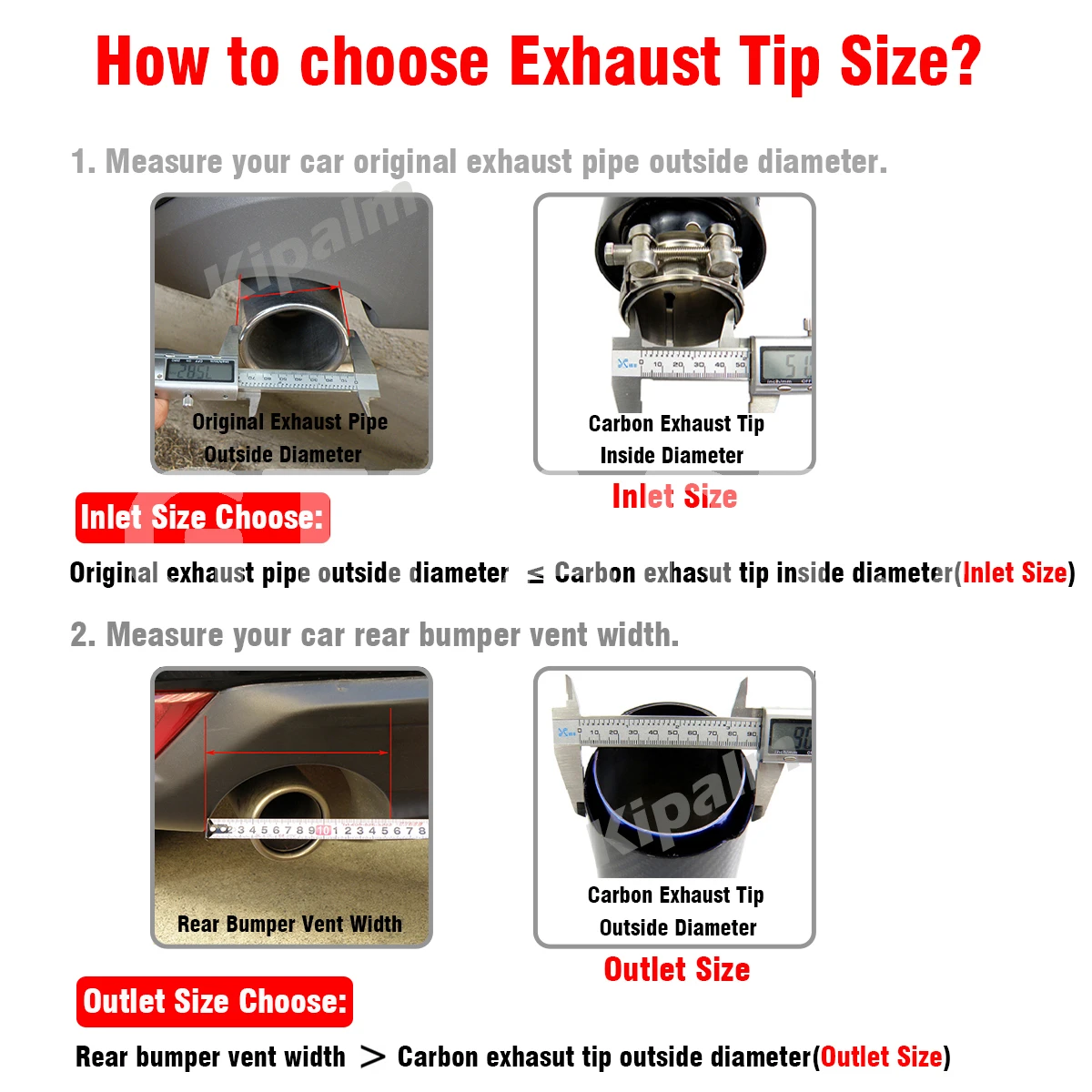 4. Мы предоставляем четкие фотографии, показывающие, как измерять и выбирать размер впуска и выхода. Пожалуйста, проверьте как можно больше, чтобы убедиться, что наконечник выхлопной трубы может поместиться на вашем автомобиле.