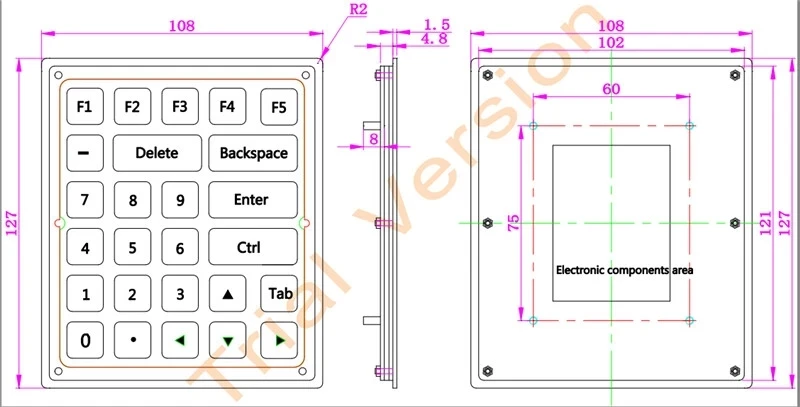 Спецификация | Количество клавиш: 26 клавиш Материал: нержавеющая сталь (передняя панель) и сплав глинозема (скальборд) Ход клавиш: 0,4 мм Срок службы keyswitch: более 10 миллионов операций Технология Keyswitch: золото на золотом металлическом куполе и прочная печатная плата Стиль крепления: крепление на стойку G.W. : 0,3 сом Размеры: 108*127 мм (передняя панель) Напряжение питания: + 5 В постоянного тока +/-5% Интерфейс связи: USB или PS/2 Matrix port (опционально) Уровень защиты: IP65 (передняя панель) Рабочая температура:-40 ~ + 70 Температура хранения: -50 ~ + 80 CE, FCC, соответствует RoHS Поддержка ОС: DOS/Windows95/98/NT/ME/2000/2003/XP/Vista/7,8,10 Linux, Mac и т. Д. Мтбф> 50000 ч MTTR <30 мин |