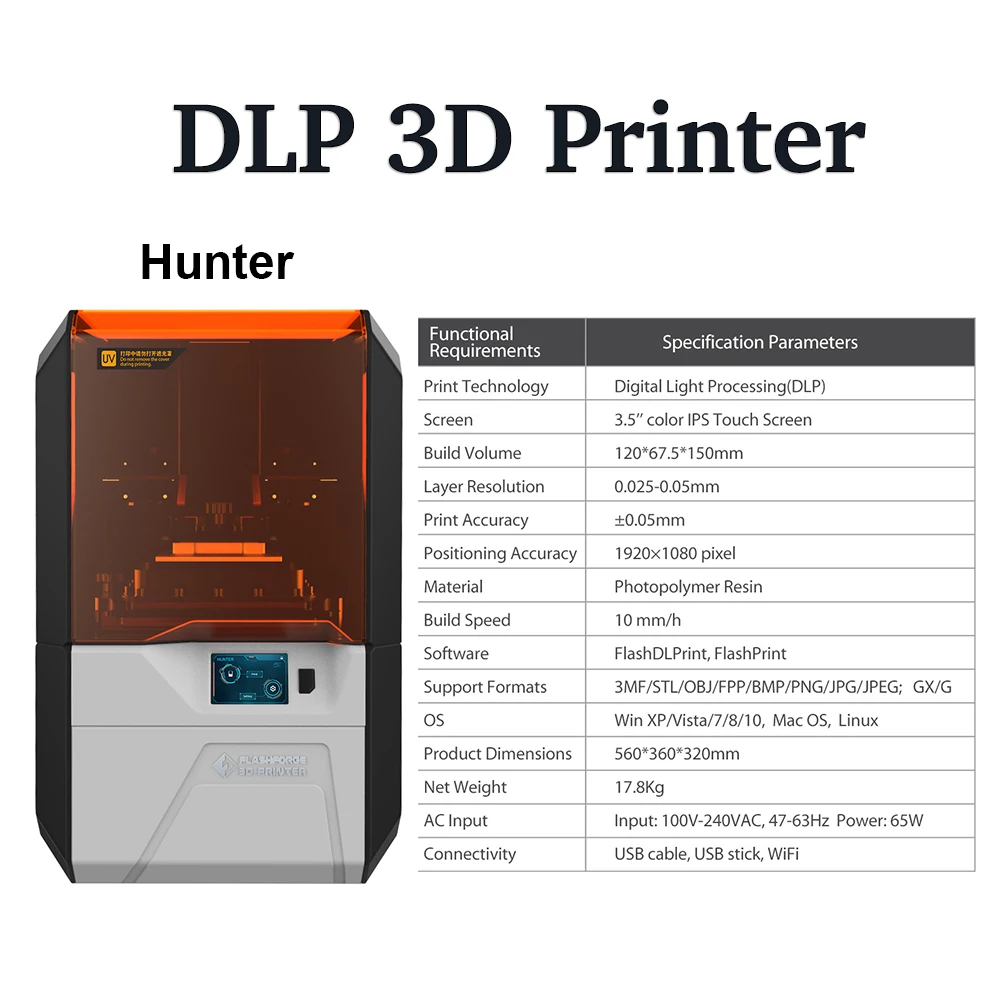 Отзывы о Flashforge Hunter DLP 3d принтер предварительный просмотр сенсорный Экран высокой точности