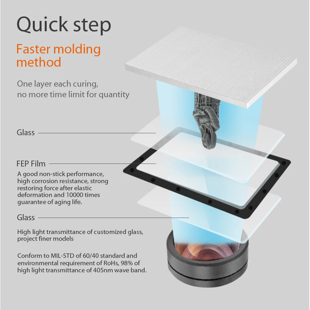 Съемные алюминиевые смолы НДС и FEP пленкиСпособствует минимальным отходам смолы, долговечности и низким расходам на техническое обслуживание.