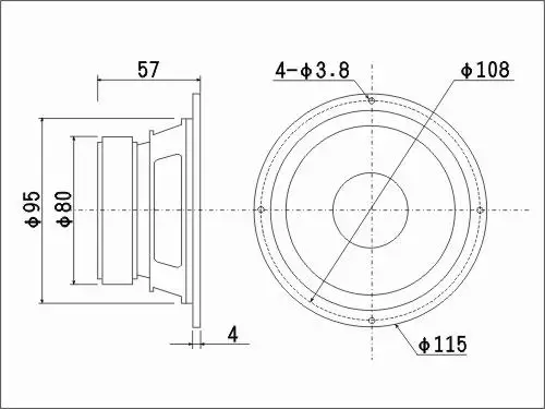 Диаметр раковины 115 мм, диагональное расстояние отверстия 108 мм, диаметр отверстия динамика> = 97 ~ 102 мм, общая высота 57 мм, диаметр магнита 80 мм, пожалуйста, будьте оптимистичны по поводу размера перед размещением заказа! Импеданс равен 8 Ом, пиковая мощность составляет 80 Вт, чувствительность 88dB, диаметр по индивидуальному заказу звуковая катушка наушников составляет 25 мм, а вес нетто составляет около 0,8 кг.