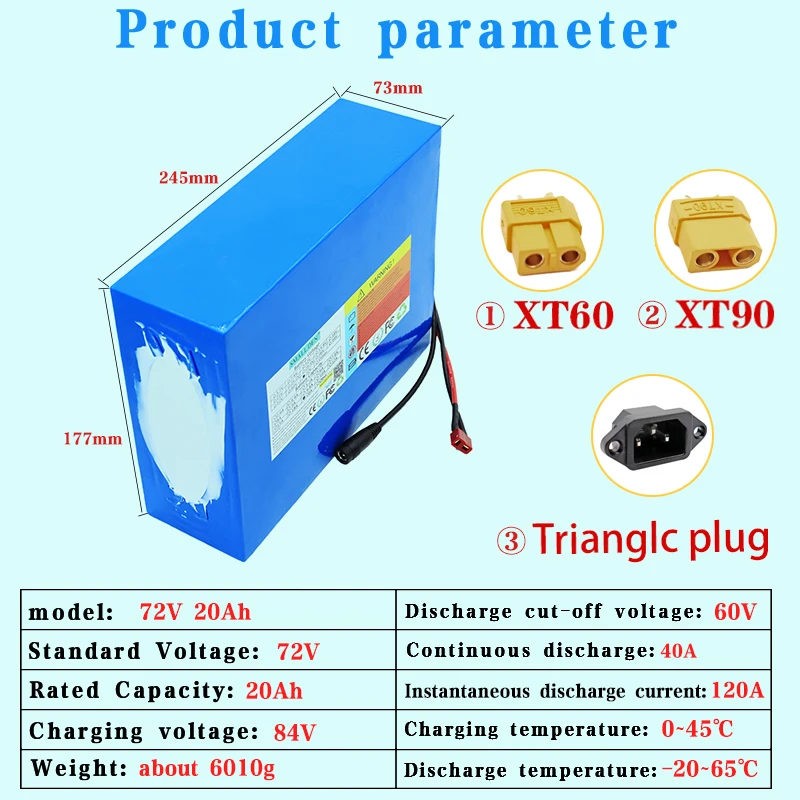 Подходит для всех 72 в электродвигателей мощностью до 3000 Вт, электрического велосипеда, электрического скутера, электрического трицикла, электрического мотоцикла, инвалидной коляски, электрической лодки, электроинструментов и т. Д.