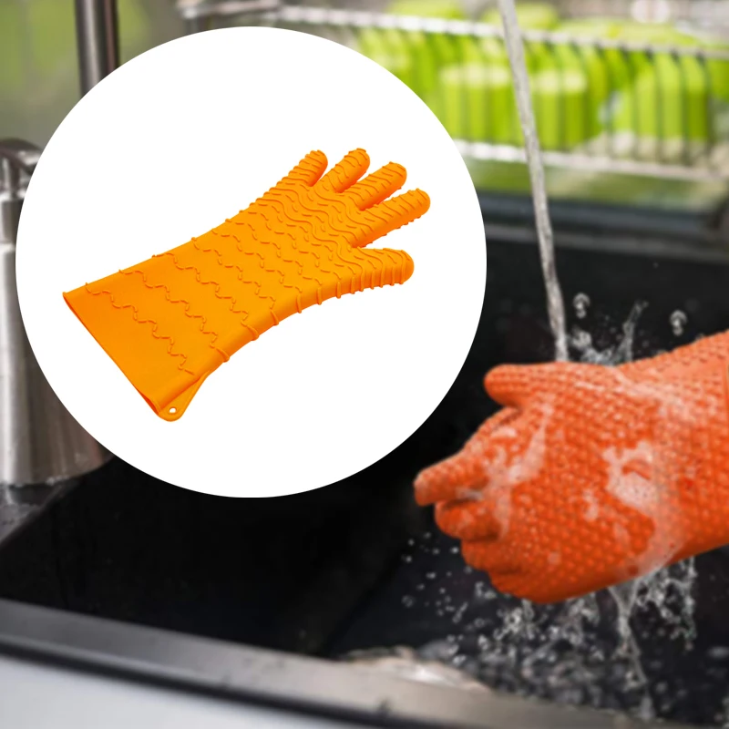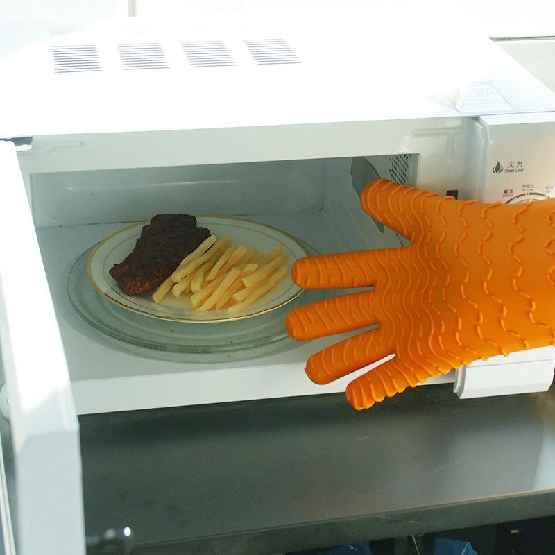 Отзывы о 1Pc Microwave Silicone Glove Orange Oven Mitts Kitchen Potholder Mat for BBQ Insulation Gloves Household Baking Barbecue Tools - купить по