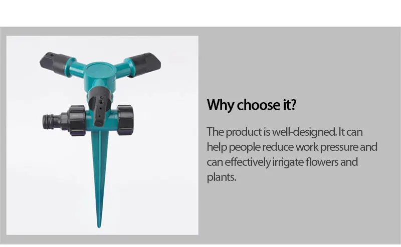 Автоматически вращающиеся руки угол можно регулировать 45 - 90 градусов скорость распыления и управление направлением, позаботьтесь о каждой части почвы влаги, которая также обеспечивает покрытие.