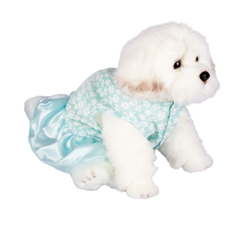 Новая весенне-летняя одежда для домашних животных, маленькое платье принцессы с цветочным рисунком, материал полиэстер, удобная и приятная для кожи ткань.