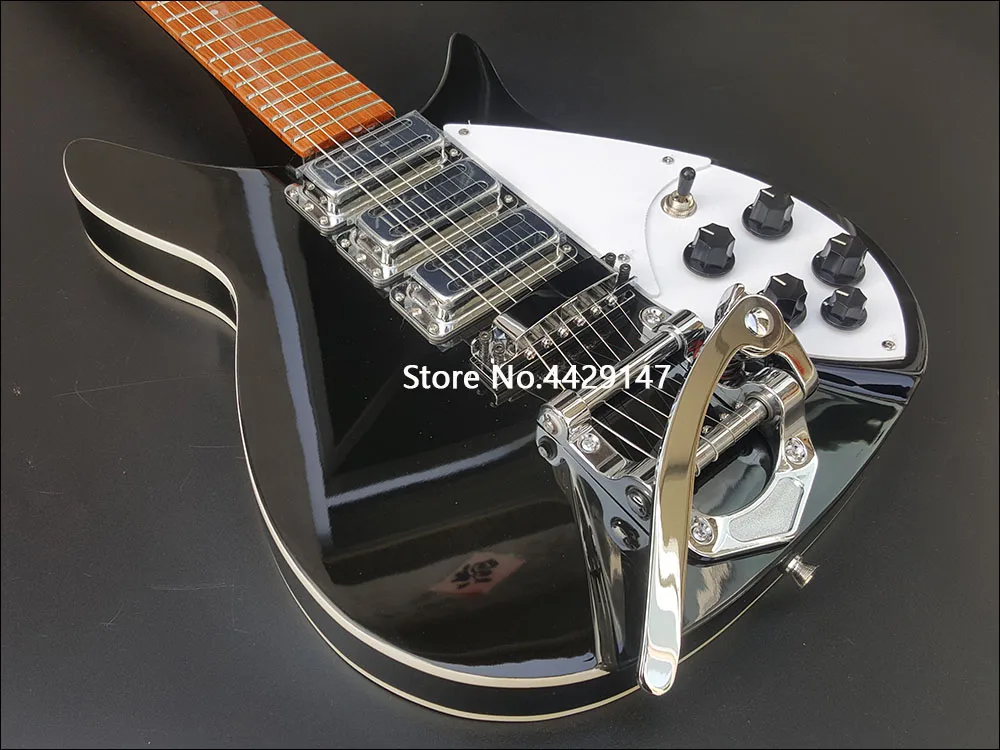 6 струн электрическая гитара Ricken 325 корпус из красного дерева гриф черный глянец отделка Bigsby Tremolo белая накладка Быстрая доставка