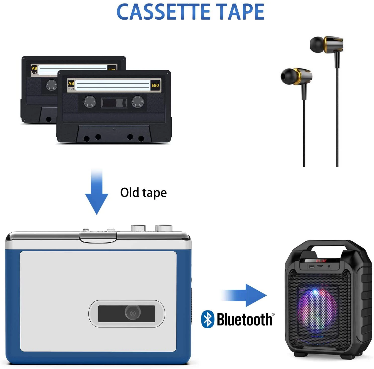 【Bluetooth кассета player】передача музыки на bluetooth-наушник или динамик directly.3.5мм разъем для наушников позволяет подключать собственные наушники для более полного звука, если вы предпочитаете. (не поддерживает Bluetooth 5,0 в настоящее время)