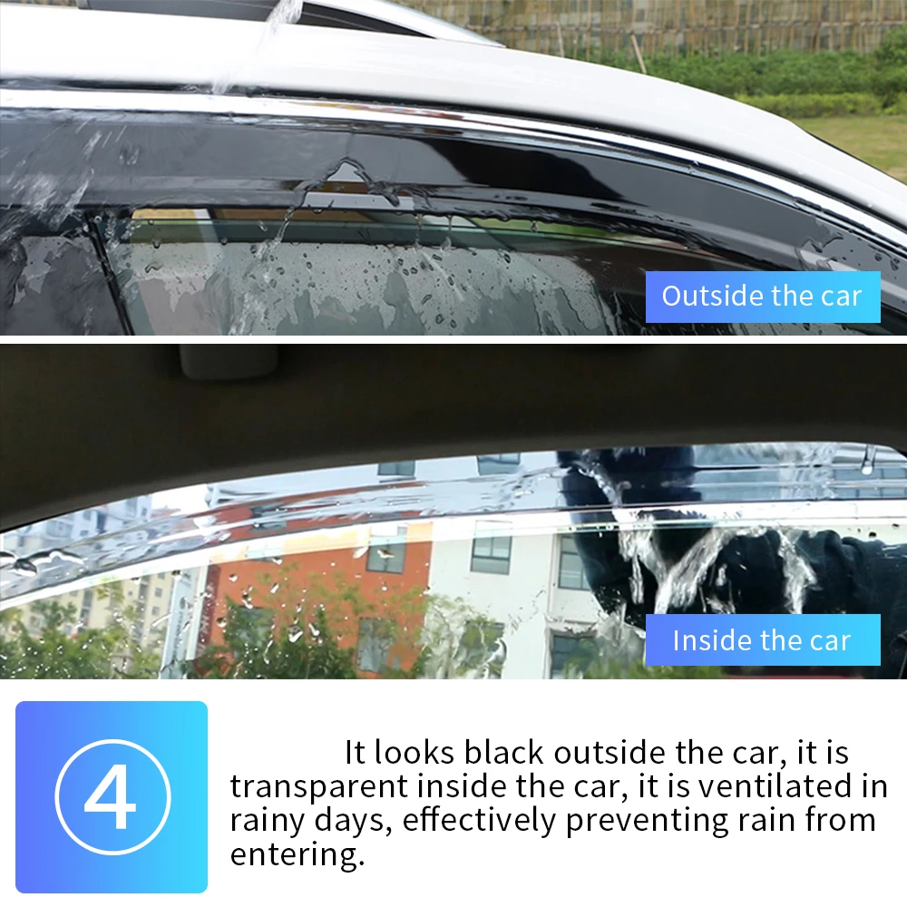 ♦Функция: устанавливается на край окна автомобиля для защиты окна от дождя и снега, предотвращения попадания дождя и снега, а также блокирования солнечных лучей и ультрафиолетовых лучей. Даже в дождливые дни окна могут быть открыты для проветривания, и дождевая вода не будет течь. Оптимизируйте внешний вид автомобиля.