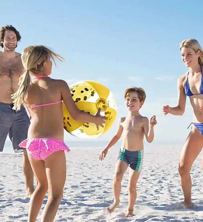Блестящий пляжный шар содержит конфетти, которые сделают его более веселым для вас, чтобы играть с друзьями и детьми.