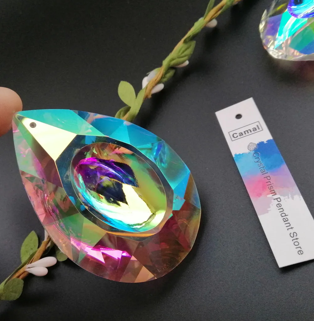 Этот AB цветной Кристальный кулон отлично подходит для люстр, штор из бисера, центров, стендов для тортов, Хрустальных нитей, украшения рождественских деревьев, потолочный светильник, цепочка для ламп, художественный проект, изготовление ювелирных изделий, свадьбы, вечеринки, клубы, детские комнаты, оконные украшения и т. Д.