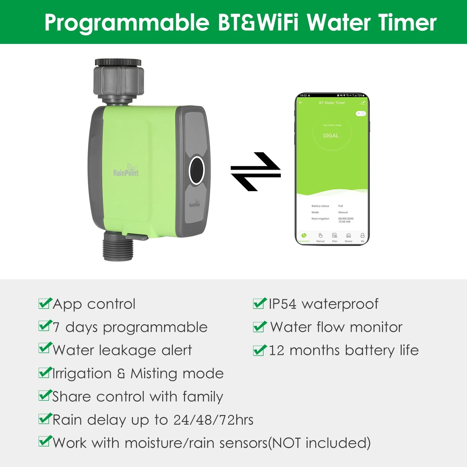 Легко добавить орошение или запотевание на небольшой газон или сад, террасы и горшечные растения с помощью шланга fauset. Простое в использовании приложение контролирует ваши потребности в орошении через ваш смартфон или планшет. С этим программируемым таймером полива больше нет туманных газонов или мертвых растений в саду из-за вашей забывчивости.