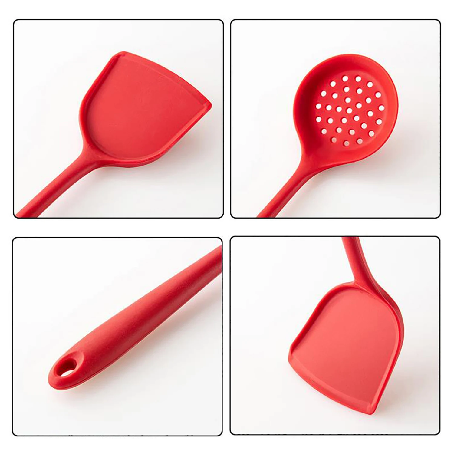 4. В комплект входят: шпатель, дырявая лопата, масляная щетка, шпатель, суповая ложка, дуршлаг, зажим для еды, коготь спагетти и т. д.
