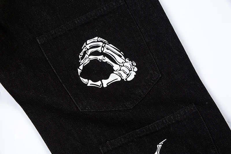 Отзывы о Черные мужские джинсы Harajuku в стиле ретро с принтом пальцев на спине женские
