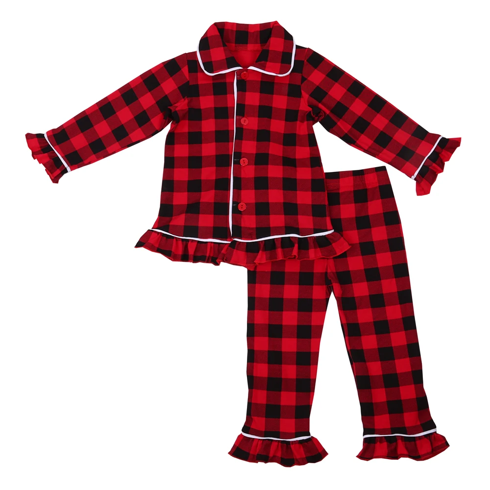 Рождественская семейная Пижама, Лидер продаж, зимняя Хлопковая пижама, пижама с оборками для маленьких девочек, одежда для сна