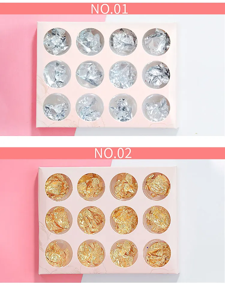 Отзывы о 6/12 коробка Золотая Серебряная медная фольга для ногтей бумага Асимметричные