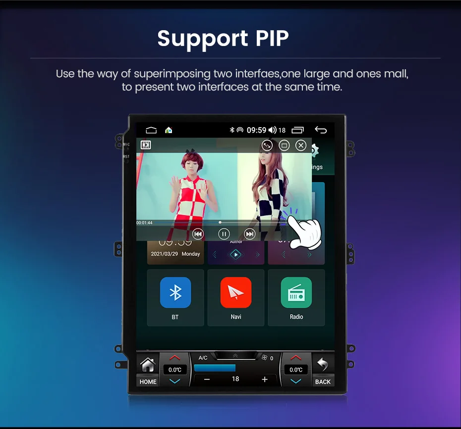 Примечание: оснащен коробкой Canbus, он может поддерживать отображение оригинальной информации о кондиционере автомобиля.