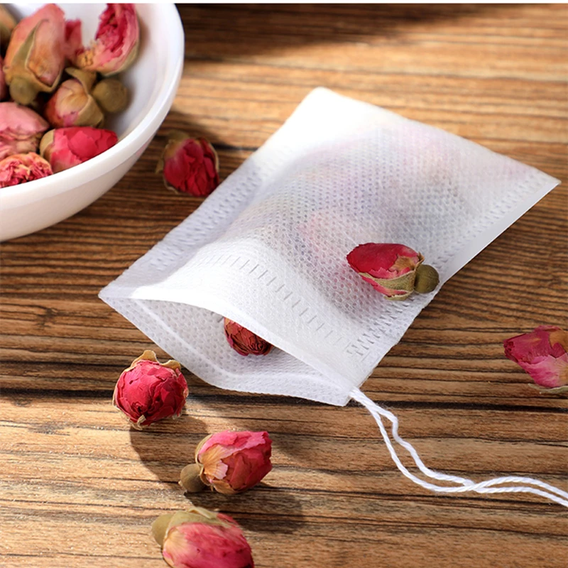 Материал: пищевой нетканый материал Преимущества: матовая конструкция уплотнения провода, простота в использовании, высокая проницаемость газа, безопасный и нетоксичный, Высокая термостойкость Использование: может содержать различные специи, суп, фильтр кофе, чай Емкость: 3-8 граммов Размеры: 5,5x7 см Посылка включает в себя: 1200 шт пустых чайных пакетиков