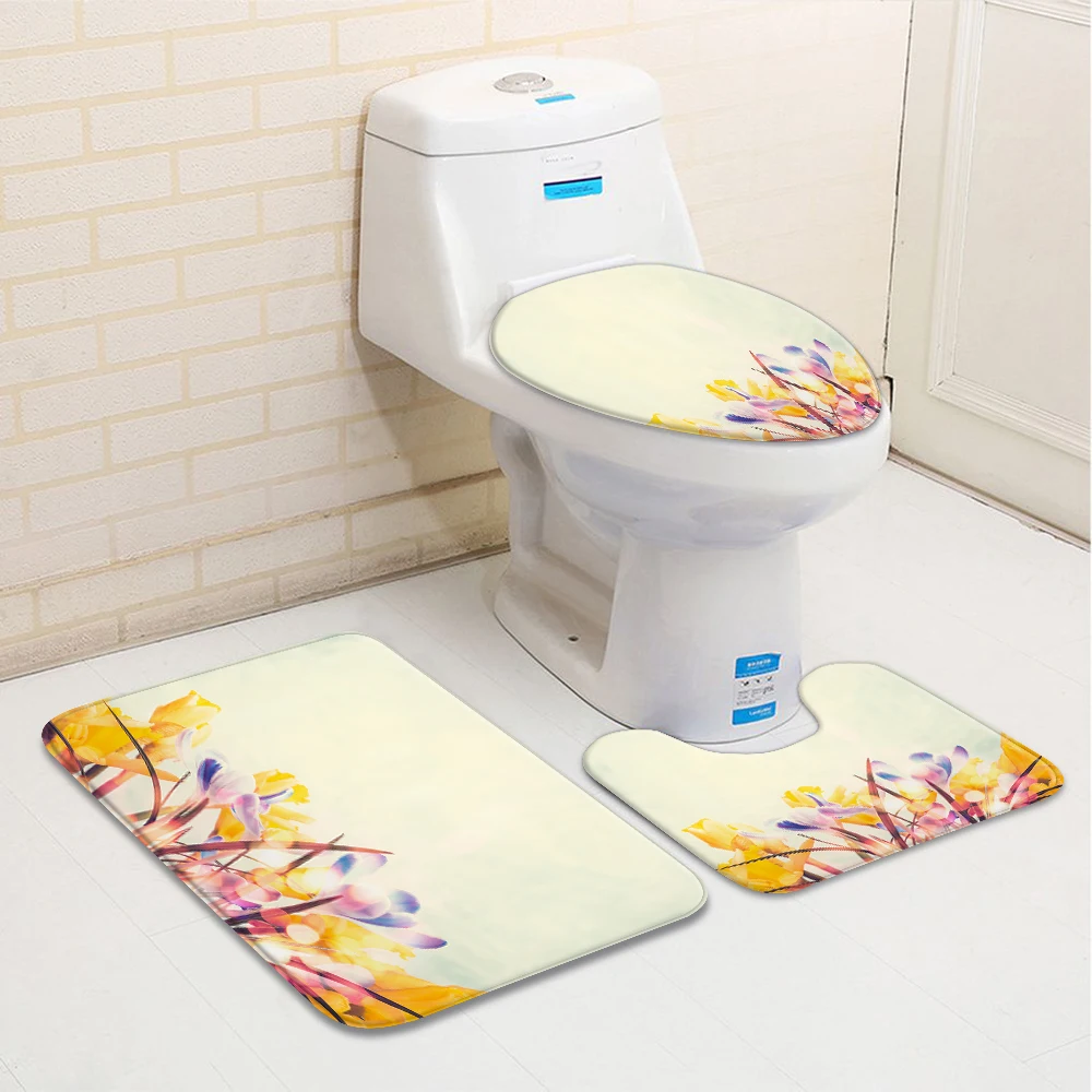 Отзывы о 3 шт. Нескользящие Коврики для унитаза с синими цветами | Дом и сад