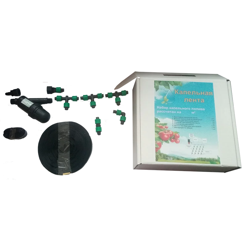 С помощью набора собирается система капельного полива на основе капельной ленты. Систему капельного полива легко собрать своими руками, нужно иметь только ножницы и полчаса свободного времени!