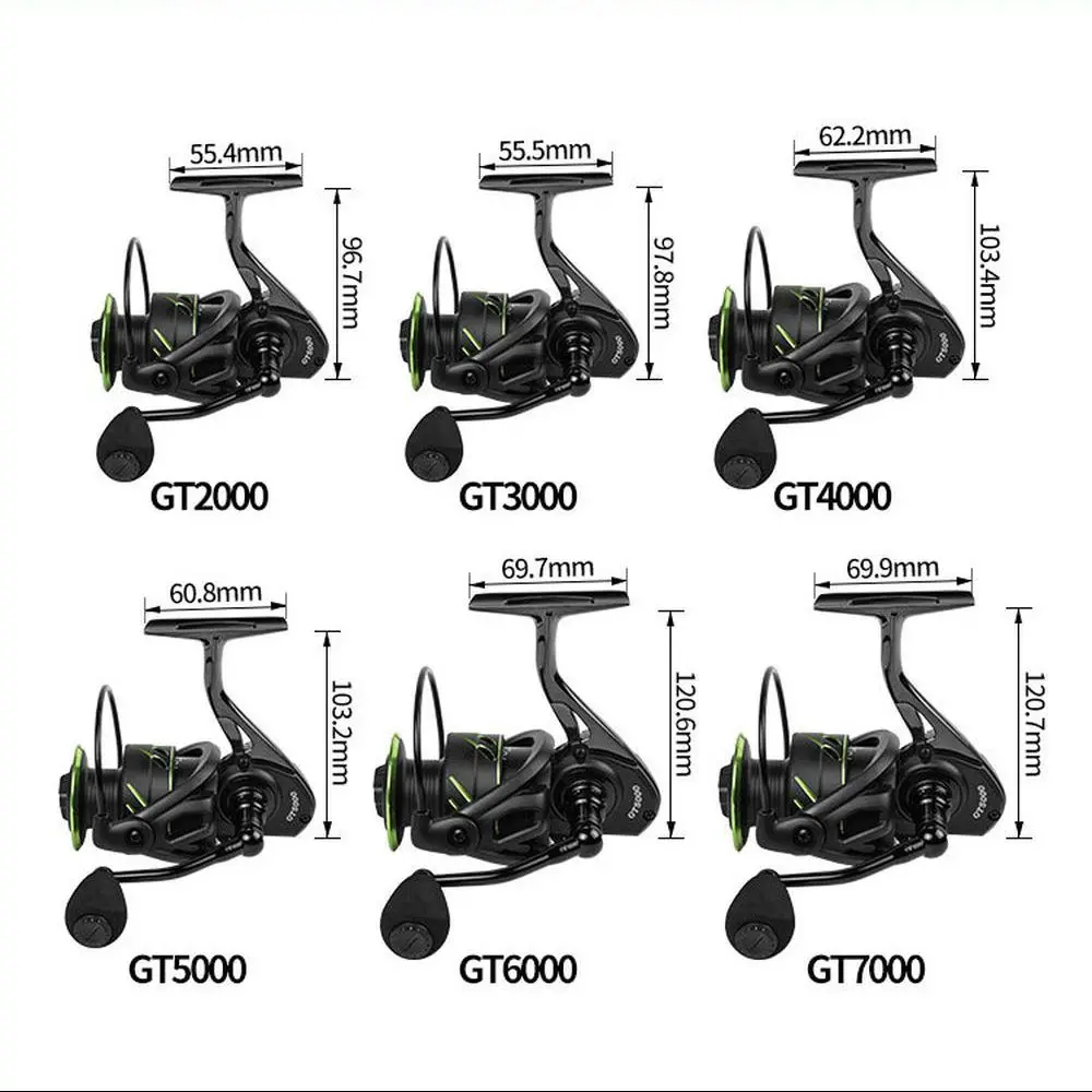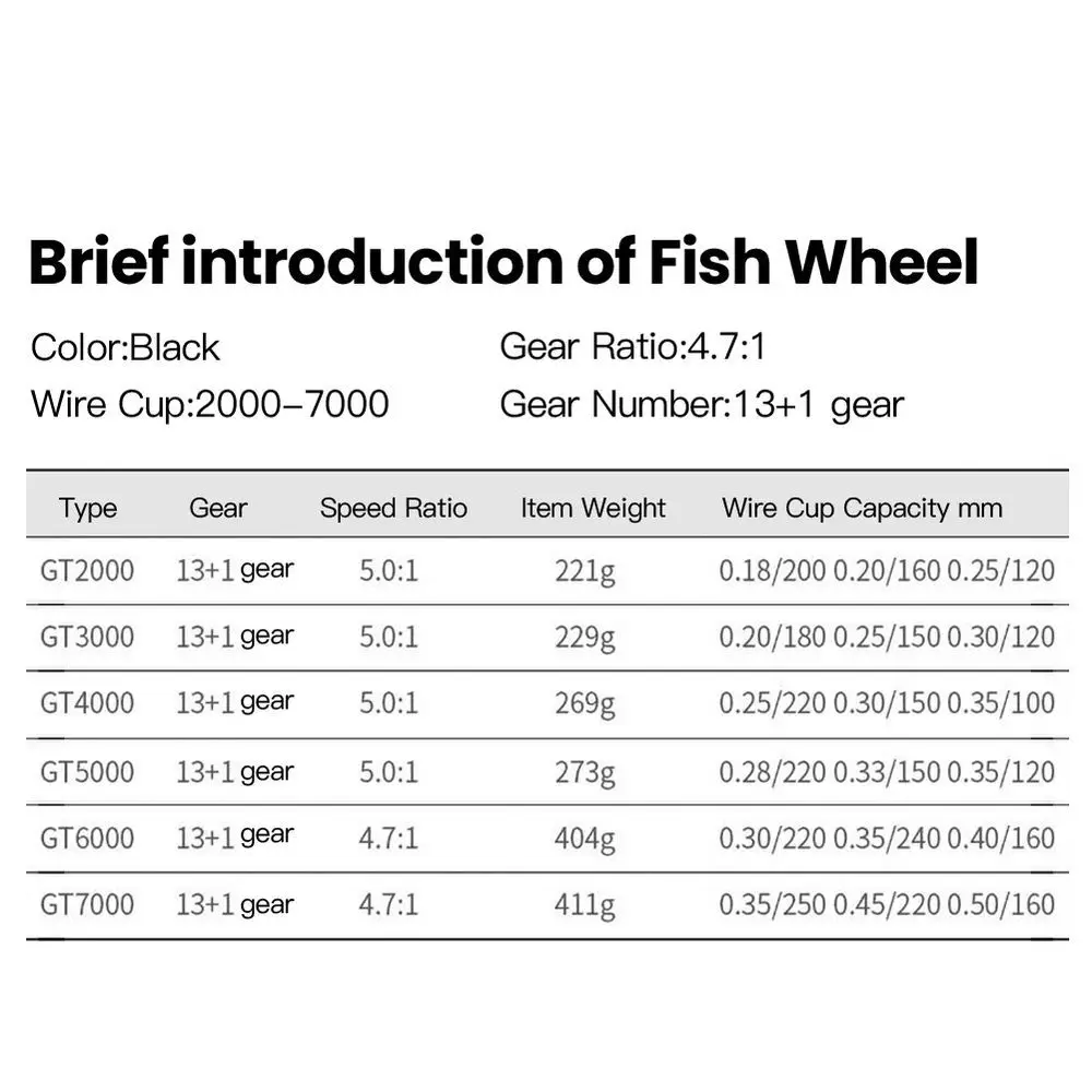Новая технология применяется для уменьшения размера рыболовной катушки. В корпусе используется Высокопрочное сырье, которое не снижает прочность рыболовной катушки, но также поддерживает ту же мощность лески. Меньший корпус с более жесткими и прочными шестернями делает рыболовную катушку реальностью. Миниатюрность и долговечность. Когда размер чашки одинаковый, корпус вращающегося колеса GT, очевидно, меньше.