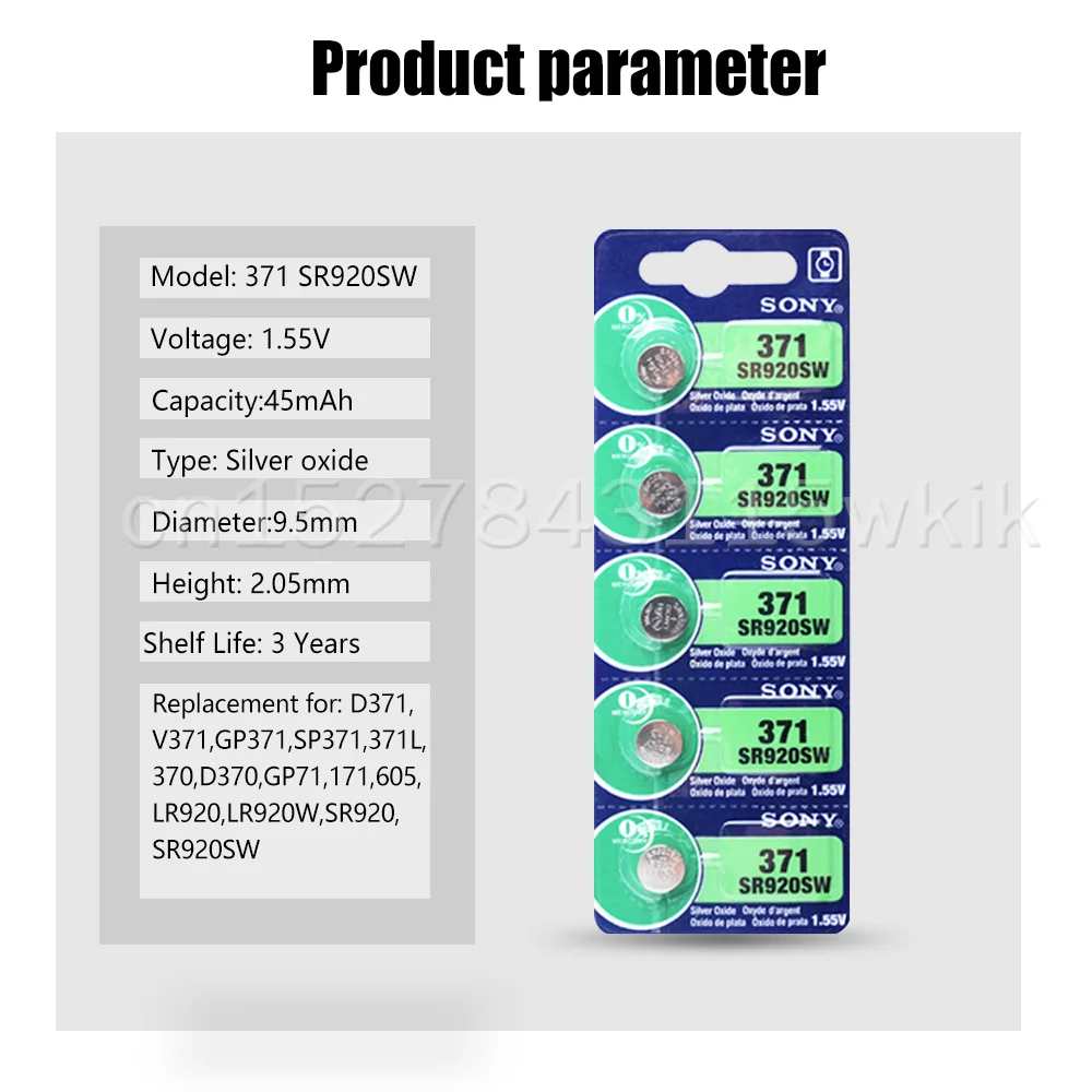 Отзывы о 5PCS Sony 371 SR920SW AG6 LR920 370A LR69 SR920 SR69 1.55V 45mAh Silver Oxide Battery For Calculator Watch MADE IN JAPAN - купить по