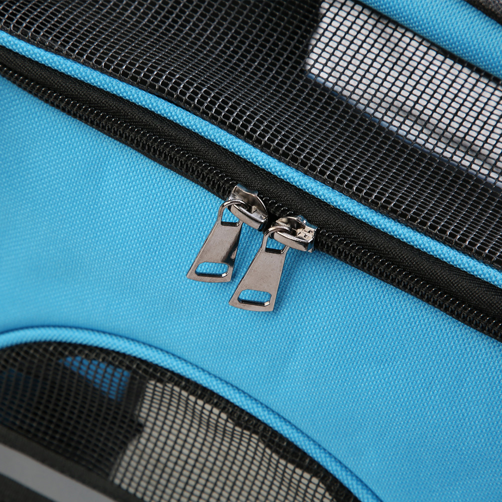 2. Перевозчик имеет много входов для облегчения домашних животных внутри и снаружи и взаимодействовать с владельцем. Выход на вершине удобен для домашних животных, чтобы выдержать их головы. Этот вентилируемый Сетчатый Дизайн может не только обеспечить нормальную циркуляцию воздуха в рюкзаке питомца, но и эффективно помочь домашним животным уменьшить беспокойство и облегчить их наблюдение за окружающей средой.