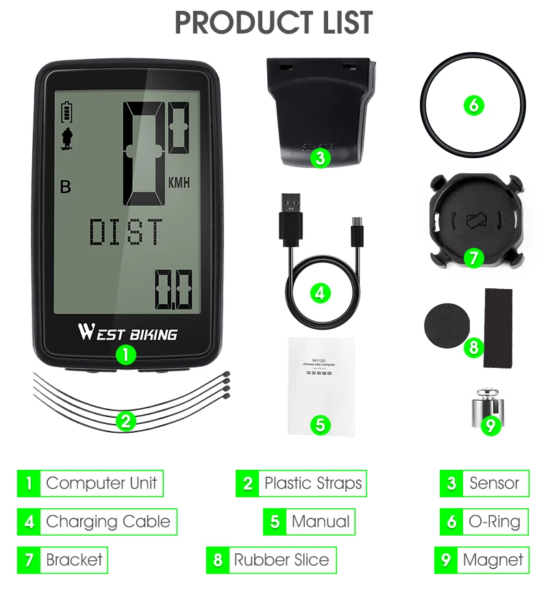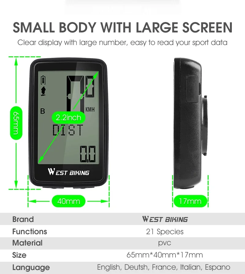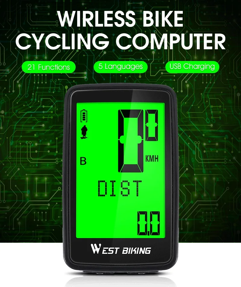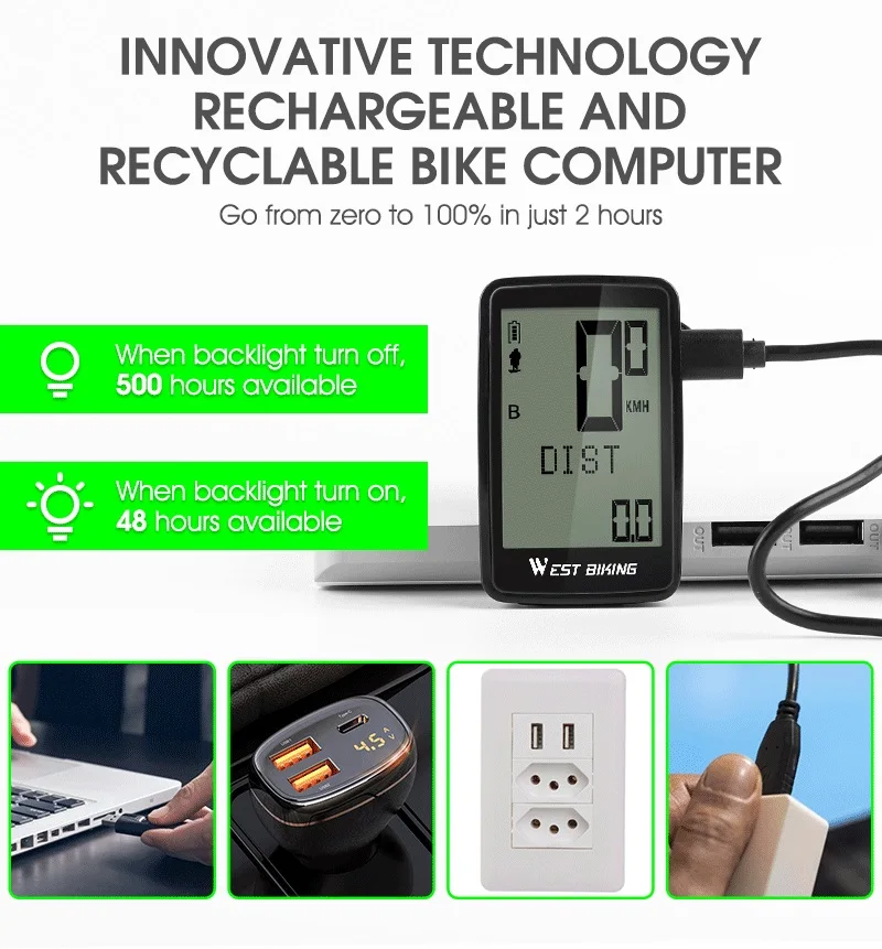 Отзывы о WEST BIKING USB Перезаряжаемый велосипедный компьютер 5 языков водонепроницаемый