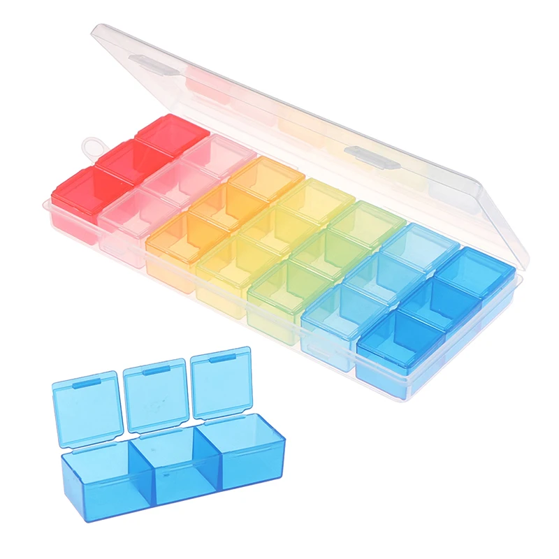 1,7/14/21 отсеков с отдельными крышками для удобного ежедневного дозирования