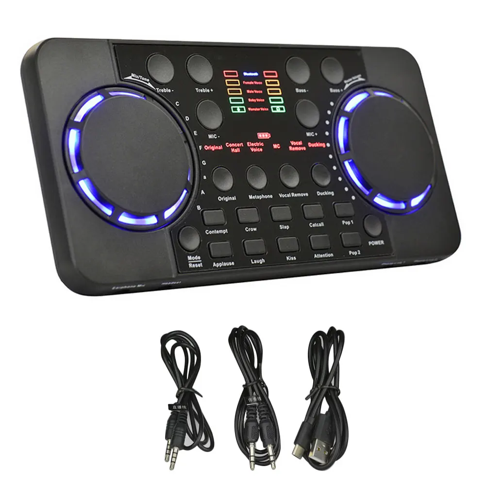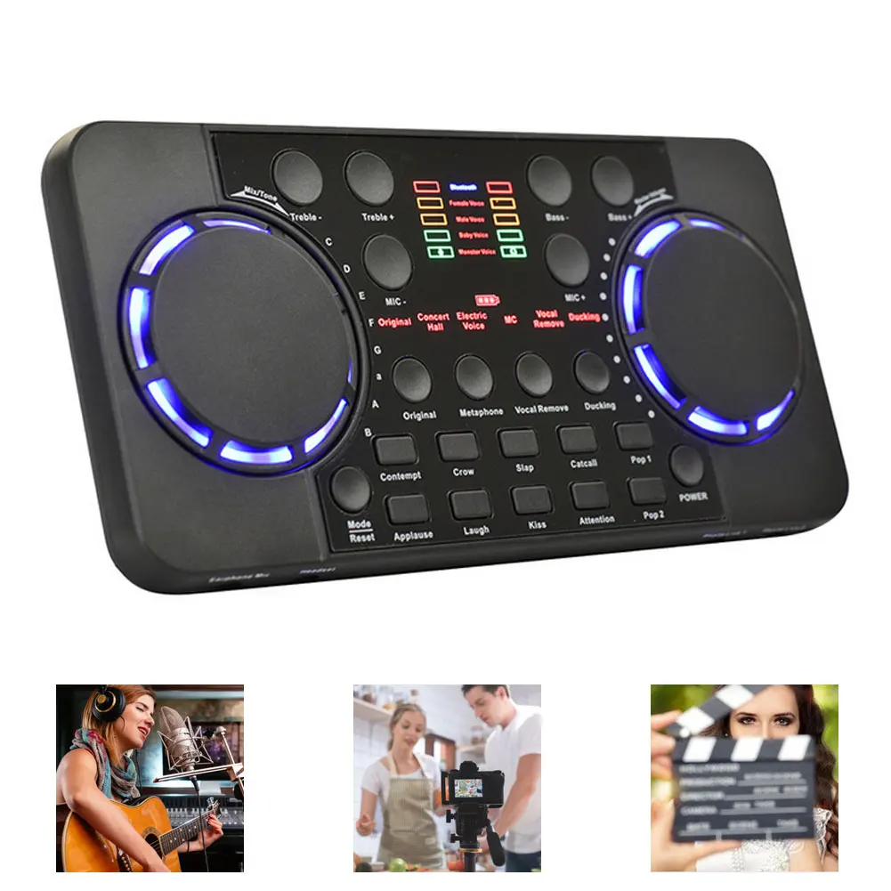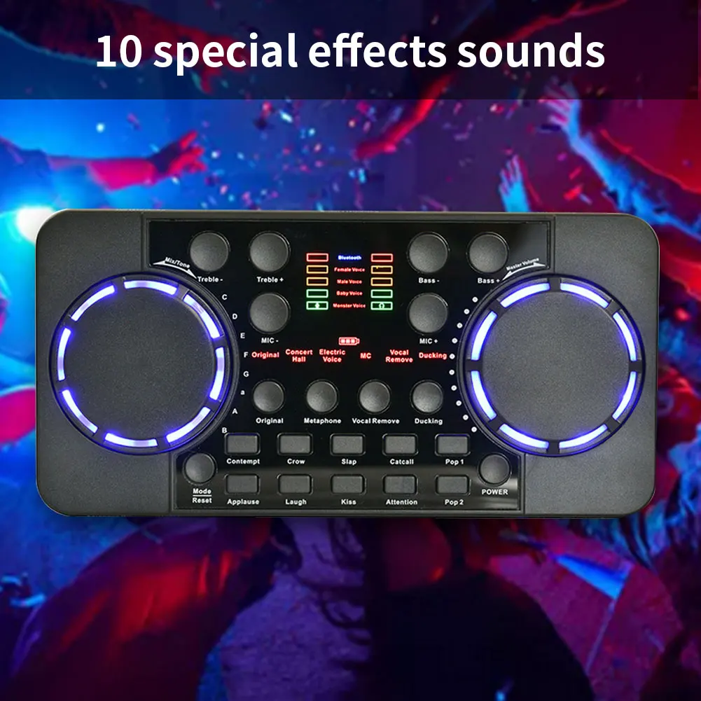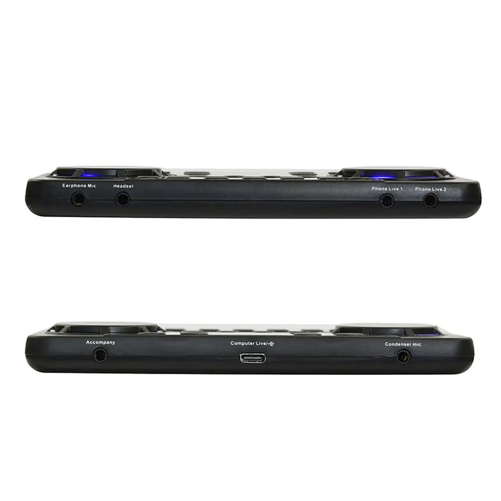 Многофункциональная живая звуковая карта маленькая и легко переносится и хранится. Звуковая карта регулировки громкости Bluetooth поддерживает соединение Bluetooth и широко используется в домашних условиях, мобильных телефонах, компьютерах и записи. Это очень подходит в качестве подарка для друзей, которым нравится караоке.