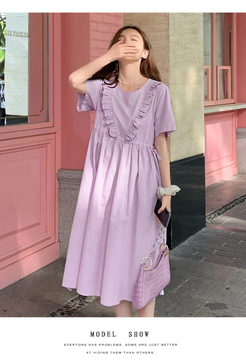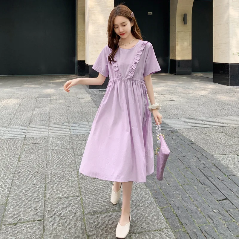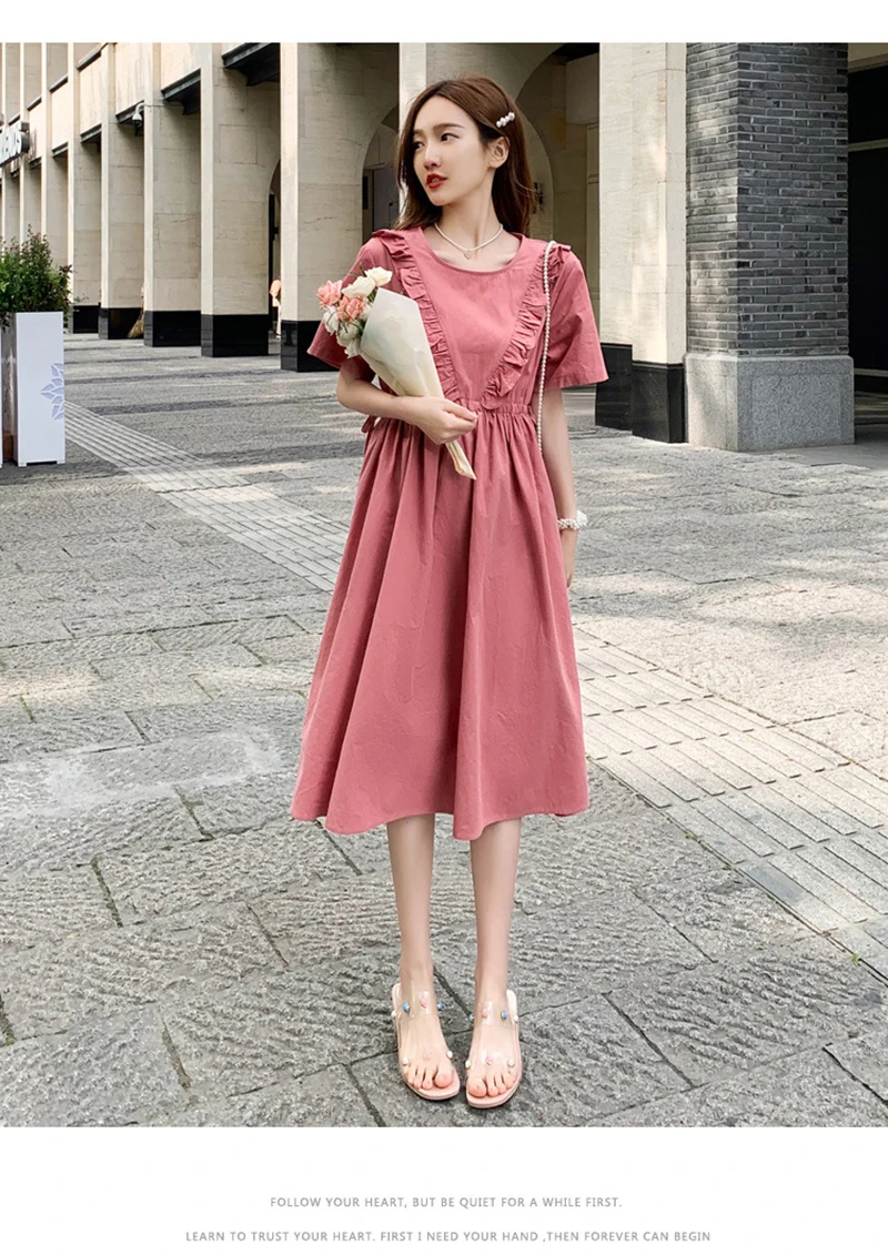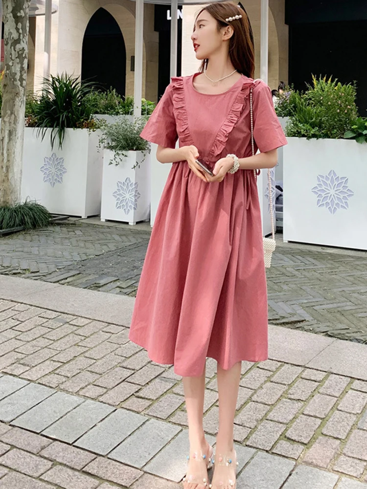 Отзывы о Однотонное платье для беременных женщин Одежда модное с коротким рукавом