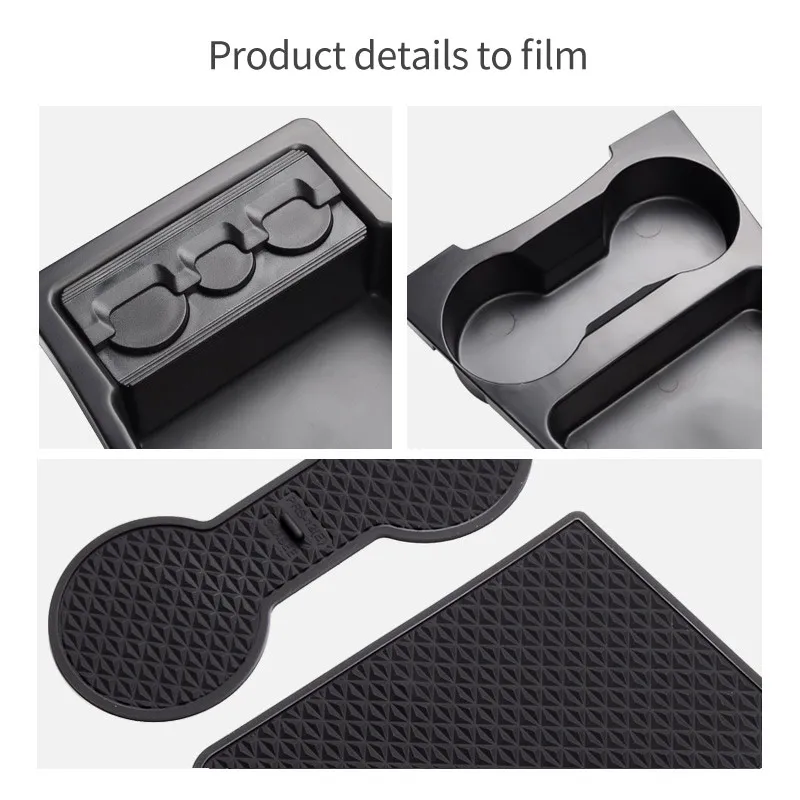 Изготовлен из высококачественного АБС-пластика Съемные силиконовые коврики для нескользящей/легкой очистки Помогает сохранить вашу центральную консоль Прямая замена, простая установка Полностью съемная коробка, добавляет пригодные для использования подстаканники