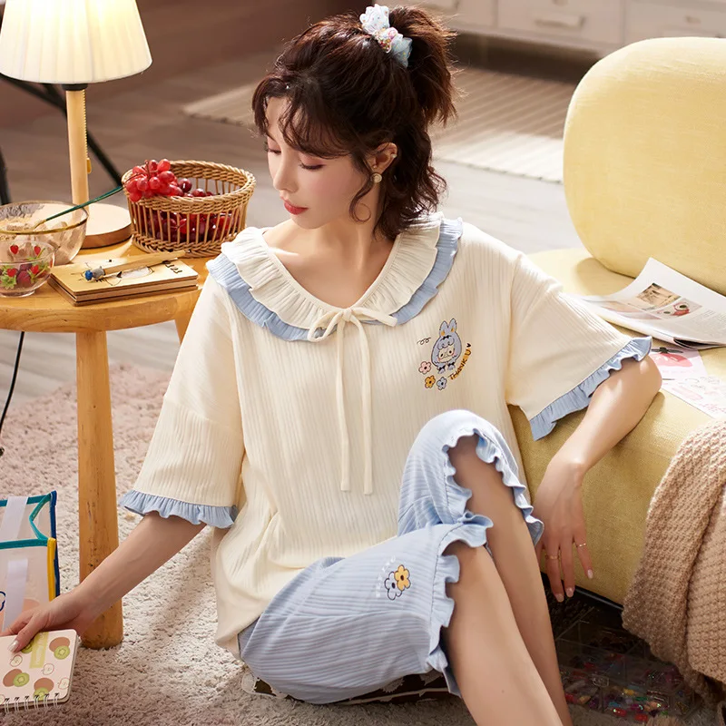 Отзывы о Женские пижамы летние новые Капри с коротким рукавом хлопковые тонкие милые