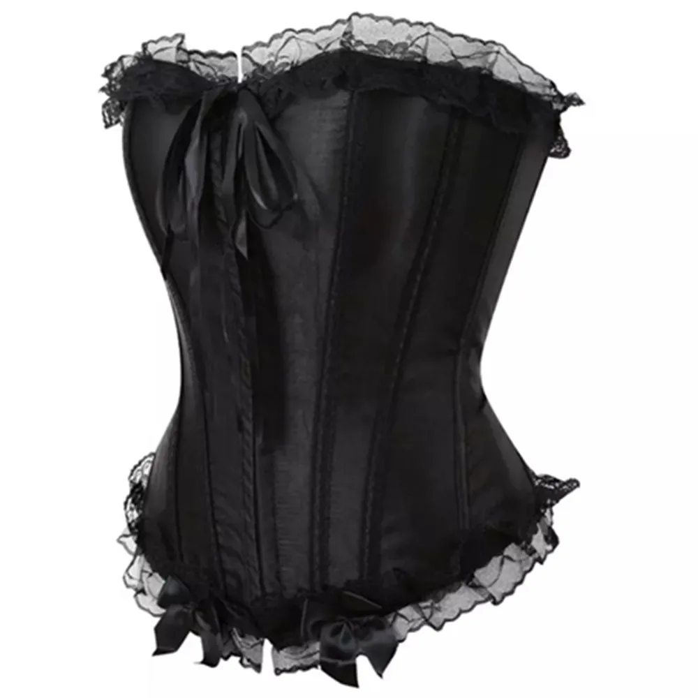 Отзывы о Женский сексуальный корсет со шнуровкой атласный с оборкой и юбка черное
