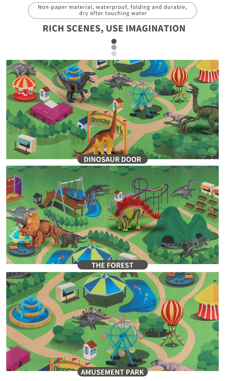 Игровой коврик по сравнению с конкуренцией, наш коврик изготовлен из мягкого нетканого материала вместо тонкого ПВХ. Этот ковер показывает нам интересный мультяшный парк динозавров с яркими цветами. Он достаточно большой для 2-4 игроков, чтобы провести время вместе.