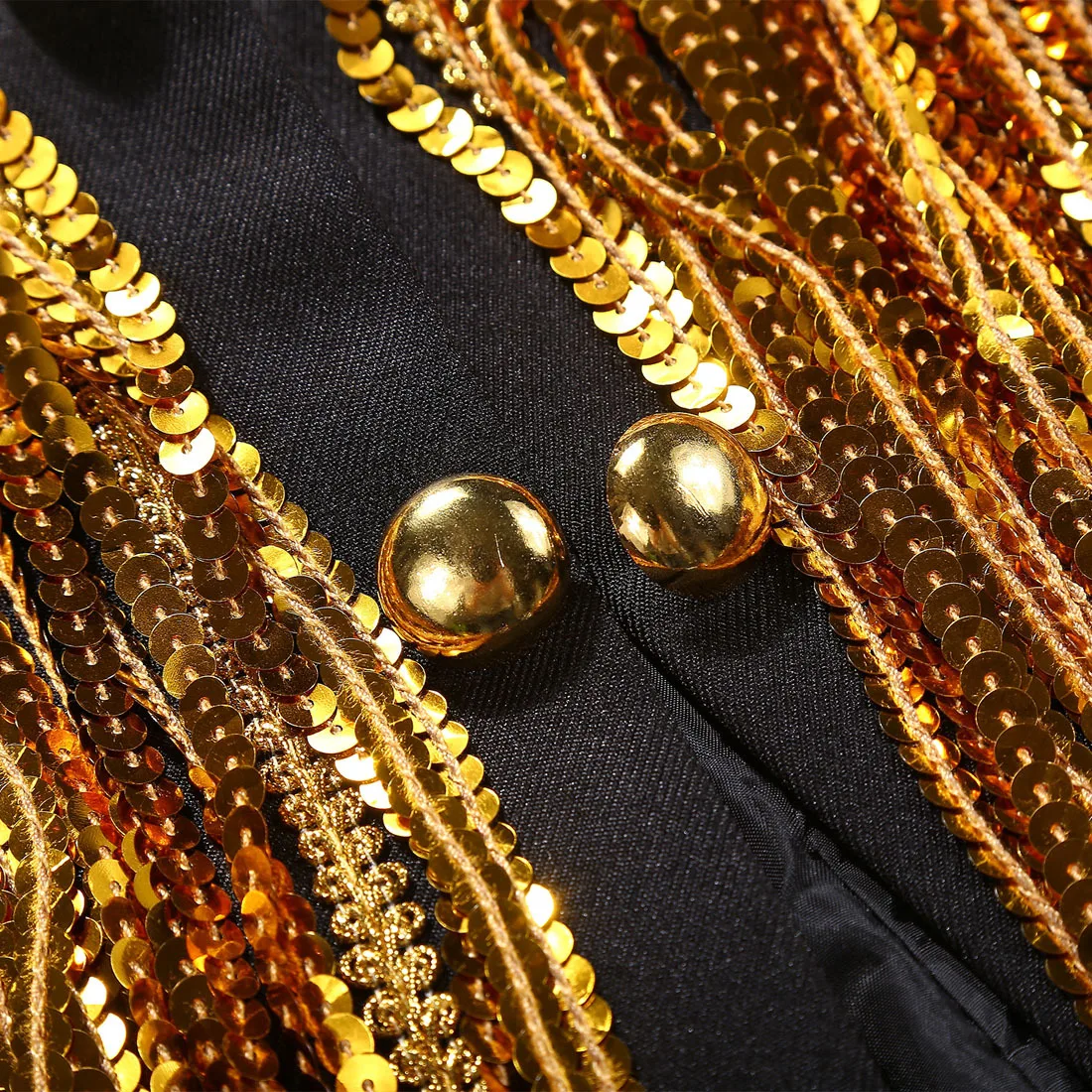 Отзывы о Блейзер Мужской с золотыми кисточками и блестками блейзер воротником-стойкой