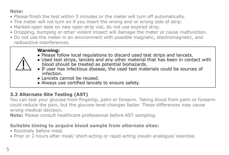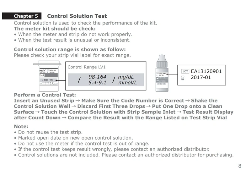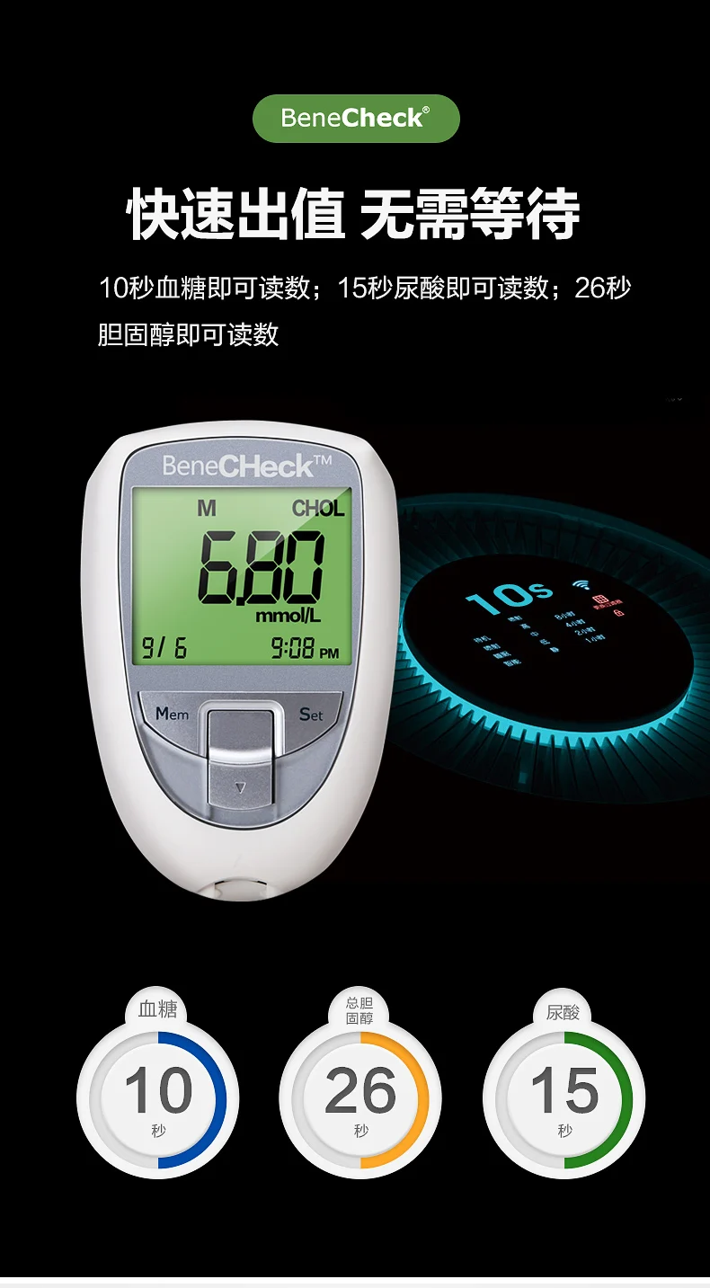 【Название продукта 】 Общее название: тест на глюкозу в крови Название на английском языке: тест на глюкозу в крови [Характеристики модели] 25 штук/бутылка, 2 бутылки/коробка. 25 штук/бутылка, 1 бутылка/коробка. 【Ожидаемое использование 】 Этот продукт используется для количественного определения концентрации глюкозы во всей крови капиллярных кровеносных сосудов на пальцах. Эта тест-полоска для определения уровня глюкозы в крови подходит только для анализатора уровня глюкозы в крови Baijie, который может точно измерить концентрацию глюкозы во всей крови. В тех случаях, когда в передней части глюкоза в крови тест-полоска для соприкасается с цельной крови на вашем пальца (предварительно импа Ульс кончика пальца для того, чтобы получить в допустимом диапазоне 1-1,5 microliters цельной крови), вся кровь быстро всасывается в реакционную зону тест-полоски. Время тестирования составляет около 10 секунд, в анализаторе уровня глюкозы в крови Результаты теста отображаются на экране. Метод оксидазы глюкозы был использован для количественного измерения концентрации глюкозы во всей крови капиллярных кровеносных сосудов. Результаты теста используются только для контроля уровня глюкозы в крови и не могут использоваться в качестве основы для корректировки лекарственных средств. [Принцип тестирования] Концентрацию глюкозы во всей крови проверяют по принципу электрохимического биосъемки; принцип тестирования использует глюкозу в крови для реакции со специальным электрохимическим веществом на тест-бумаге, чтобы генерировать небольшое количество тока реакции, И интенсивность тока зависит от концентрации глюкозы в крови. И изменить. Ток реакции измеряется измерителем глюкозы в крови Baijie в результате измерения. [Основные компоненты] 1, каждая часть тест-полоски глюкозы в крови содержит Оксидаза глюкозы: ≥ 5 единиц (аспергиллус Нигер) Другие ингредиенты: <2 г 2. Перед использованием новой полоски для определения уровня глюкозы в крови Анализатор уровня глюкозы в крови должен быть сначала кодирован и не должен смешиваться. [Метод тестирования] Метод кодирования бумаги для определения уровня глюкозы в крови: Перед упаковкой каждой новой полоски для определения уровня глюкозы в крови Анализатор уровня глюкозы в крови Baijie должен быть сначала кодирован. Кодировка шаги заключаются в следующем: 1. Вставьте кодовую карту в тестовую часть счетчика, и окно инструмента отобразит код тестовой бумаги. 2. Проверьте номер кода, указанный на этикетке тестовой бумажной бутылки, и код и номер тестового режима на кодовой карте одинаковые. Как проверить: 1. Удалите тест-полосу глюкозы в крови из тест-полоски и Немедленно закройте тест-полосу. 2. Определите режим тестирования перед каждым измерением. Единица измерения анализатора уровня глюкозы в крови такая же, как и ожидалось. Единица измерения доступна в двух миллиграммах на 100 миллилитров или millimoles на литр (мг/дл или ммоль/л). Пожалуйста, обратитесь к руководству пользователя для метода настройки. 3. Поместите тест-бумагу для глюкозы в крови плавно в анализатор глюкозы в крови, и анализатор глюкозы в крови начнет автоматически. Если нет команды в течение 2 минут, анализатор глюкозы в крови автоматически отключится, пожалуйста, выньте тест-бумагу и повторно вставьте ее. 4. Убедитесь, что код анализатора глюкозы в кров