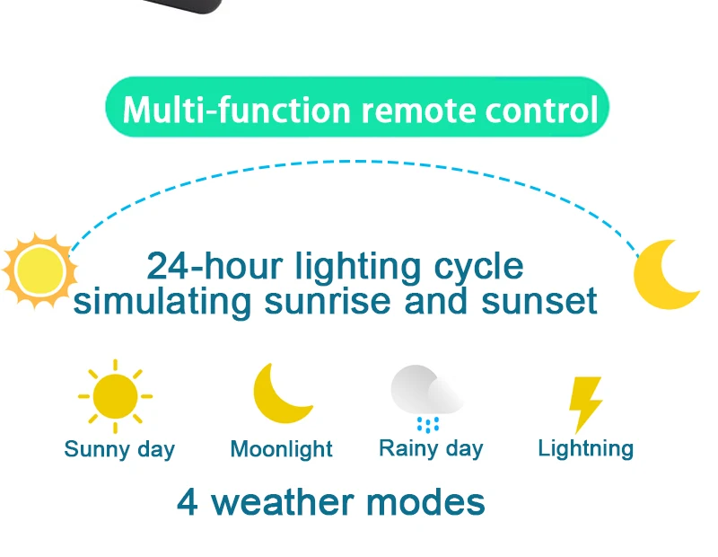 2. Есть 4 предустановленных режима Погодный светильник, облачный, солнечный, светильник ning и лунный светильник.
