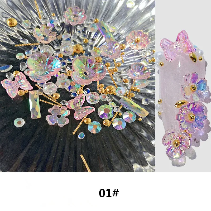 Отзывы о 1 коробка 3D украшения для ногтей Бабочка акриловый цветок Декор Аксессуары