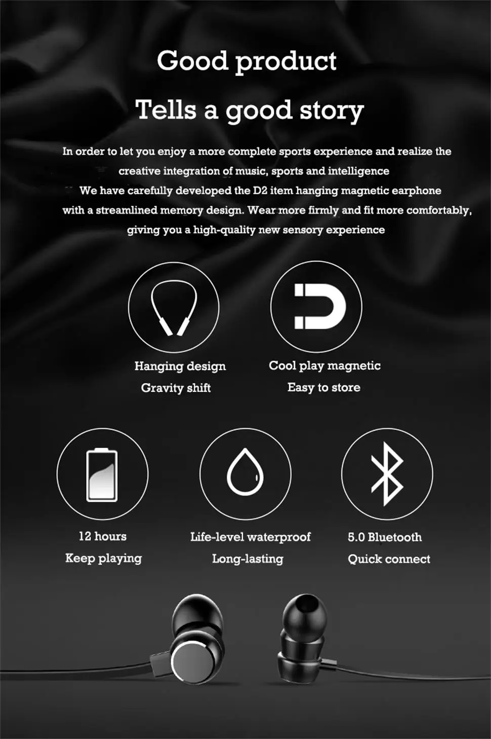 Спортивные наушники с подвеской на шее, водонепроницаемые и защищенные от пота, позволяют вам наслаждаться потоотделение, не беспокоясь Обновление версии Bluetooth 5,0, попрощайтесь с 4,0 era, быстрое и стабильное соединение 4D объемный бас, позволит вам почувствовать себя погруженным Стильный косой дизайн в ушах, легкий и удобный CVC6.0 + DSP двойное шумоподавление, четкое шумоподавление Конструкция композитной мембраны из волокна восстанавливает детали музыки до мельчайших деталей