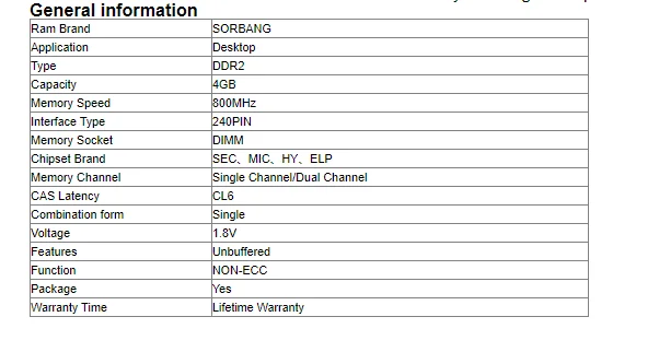 Отзывы о Для системы AMD высокая совместимость SORBANG RAM DDR2 4G 800 2 шт. * 4 Гб 8 ГБ МГц - купить по