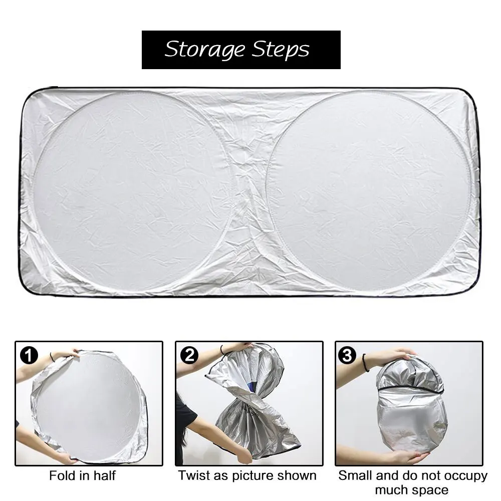 -3.автомобильный солнцезащитный козырек-это отличная помощь для защиты автомобиля, когда он закрывает все ветровое стекло и создает прохладную среду в жаркое лето. Идеально для переднего и заднего лобового стекла автомобиля. Скручивается, чтобы сложить в меньший размер для хранения.
