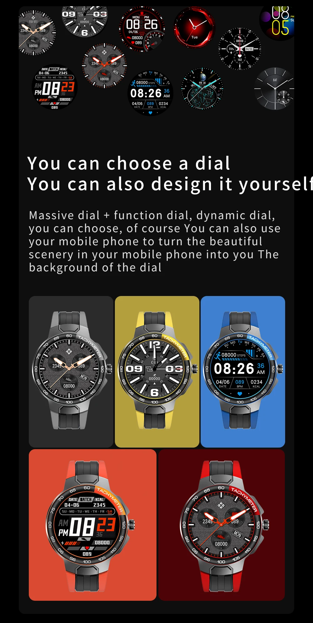 6 видов пользовательского циферблата + массивный циферблат + пользовательский циферблат, пользовательский стиль механического движения, 7 сообщений для хранения и просмотра