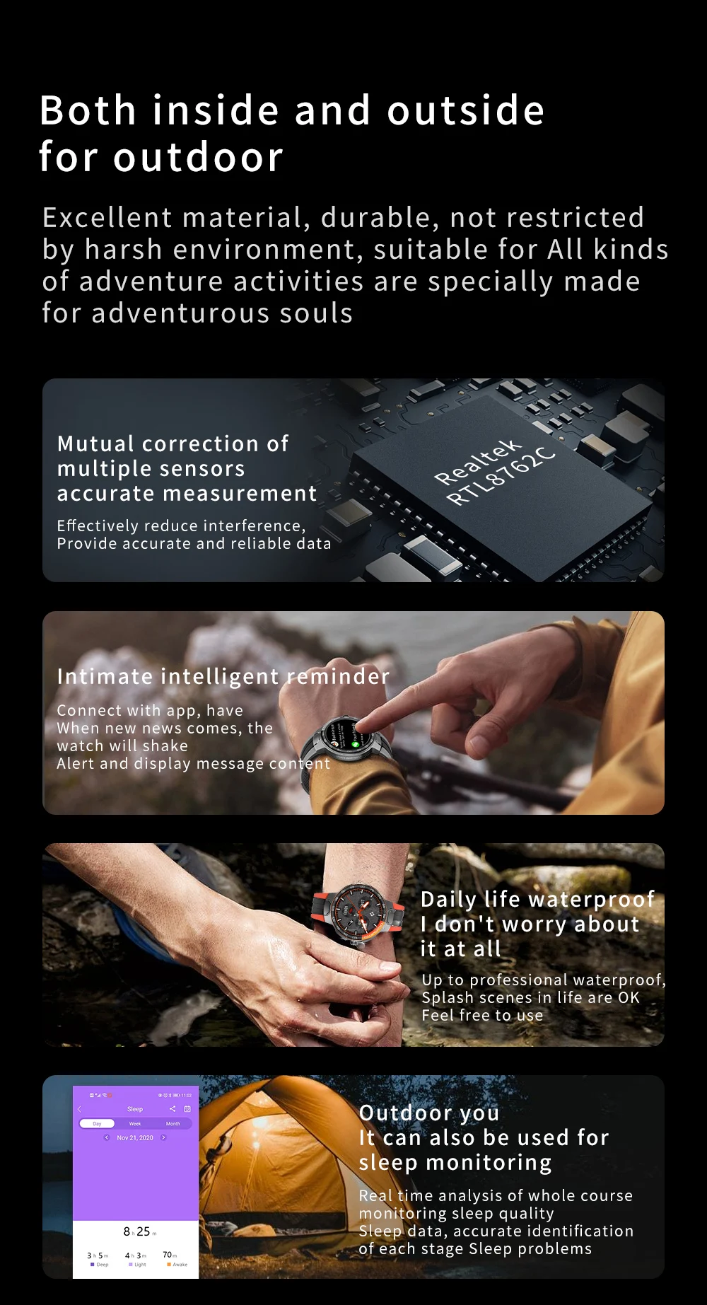 Поддержка ходьбы, бега, скакалки, альпинизма и велоспорта, баскетбола, плавания, йоги, настольного тенниса, бадминтона
