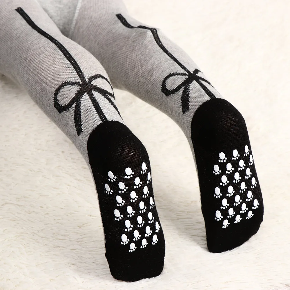 1 шт., модные хлопковые нескользящие облегающие штаны для малышей, леггинсы, детские колготки с бантом, теплые носки, чулки для девочек