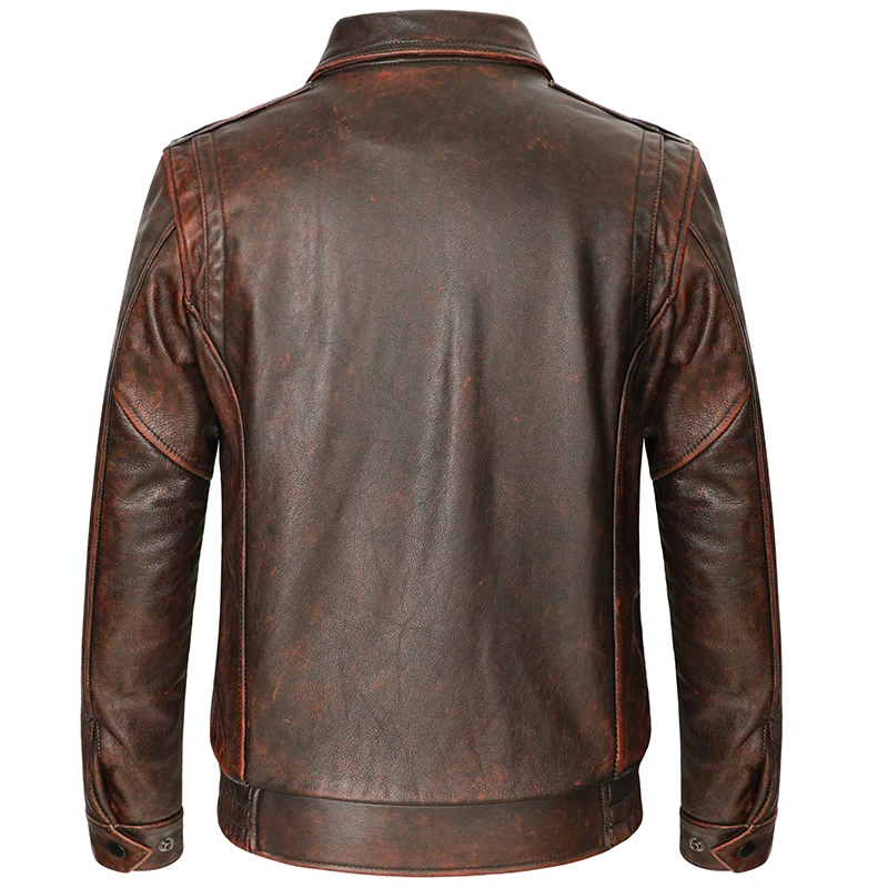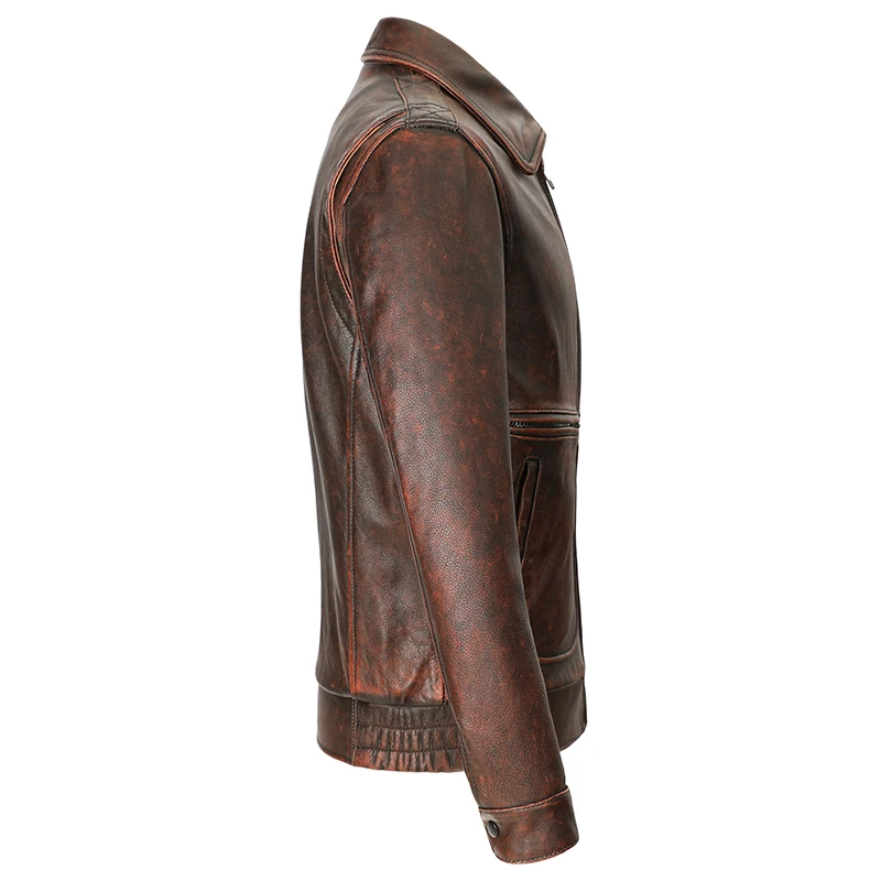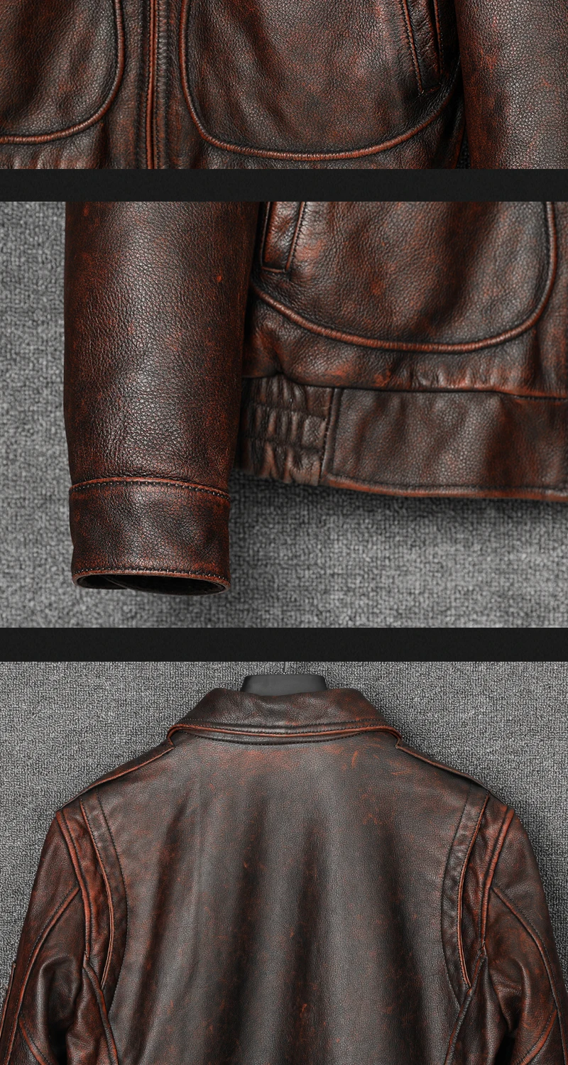 Отзывы о Мужской пиджак из воловьей кожи коричневый Состаренный с лацканами в стиле ретро