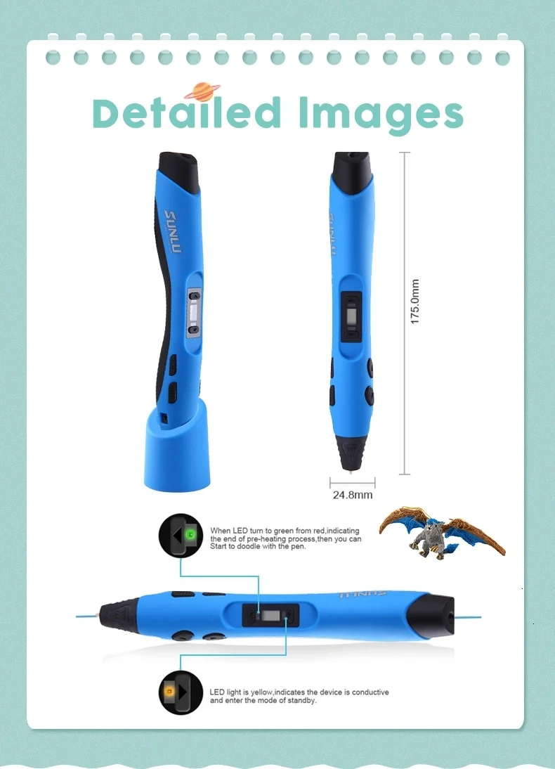 Отзывы о Ручка для 3d печати SUNLU SL 300A с профессиональным 50 м пла наполнителем нетоксичный