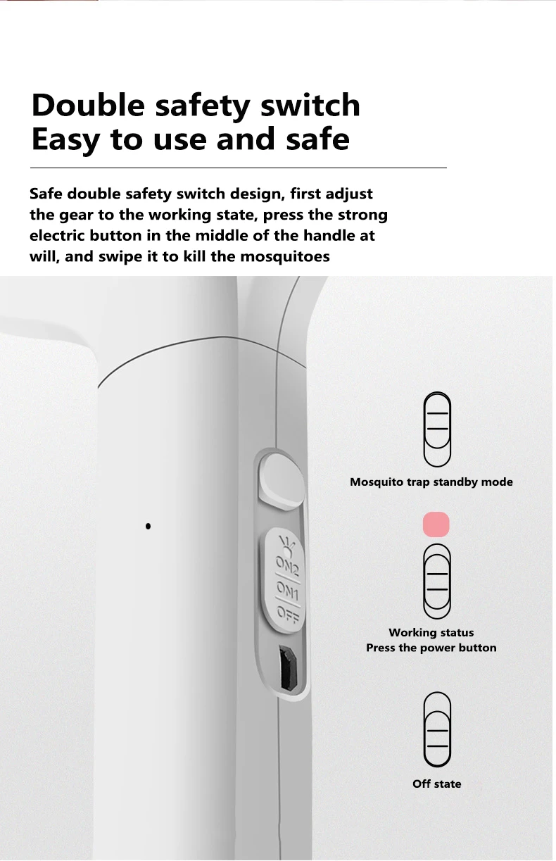 Этот электронный щаттер использует высоковольтный принцип электрического удара в чистом физическом способе, чтобы убить комаров. Когда москитный контакт с сеткой мгновенно высвобождается до 3000 В напряжения, он убивает комаров мгновенно, быстро и эффективно.