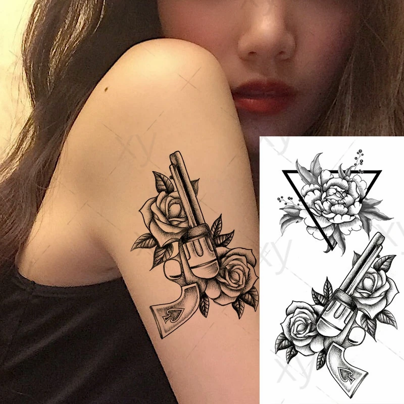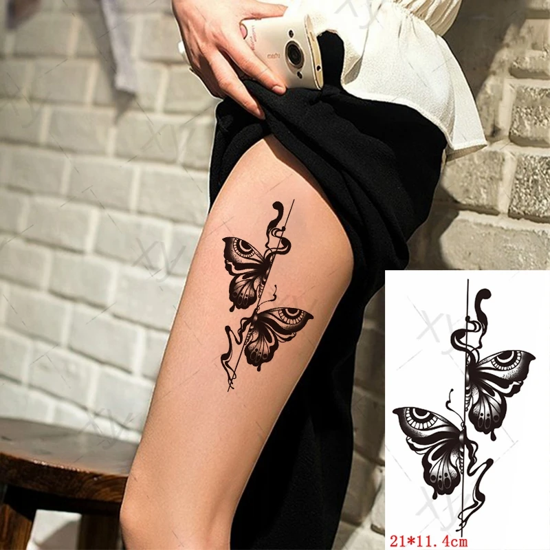 Отзывы о Водостойкая Временная тату-наклейка эскиз Черный лотос кои Ins боди-арт задний