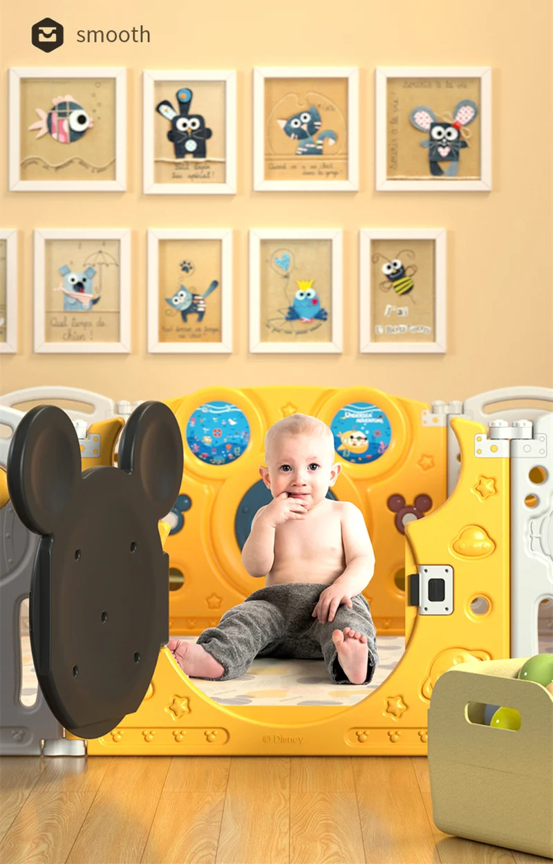 2. Детский манеж из мультфильма Дисней-это безопасные материалы, с толстой круглой доской и сертификатами CE.